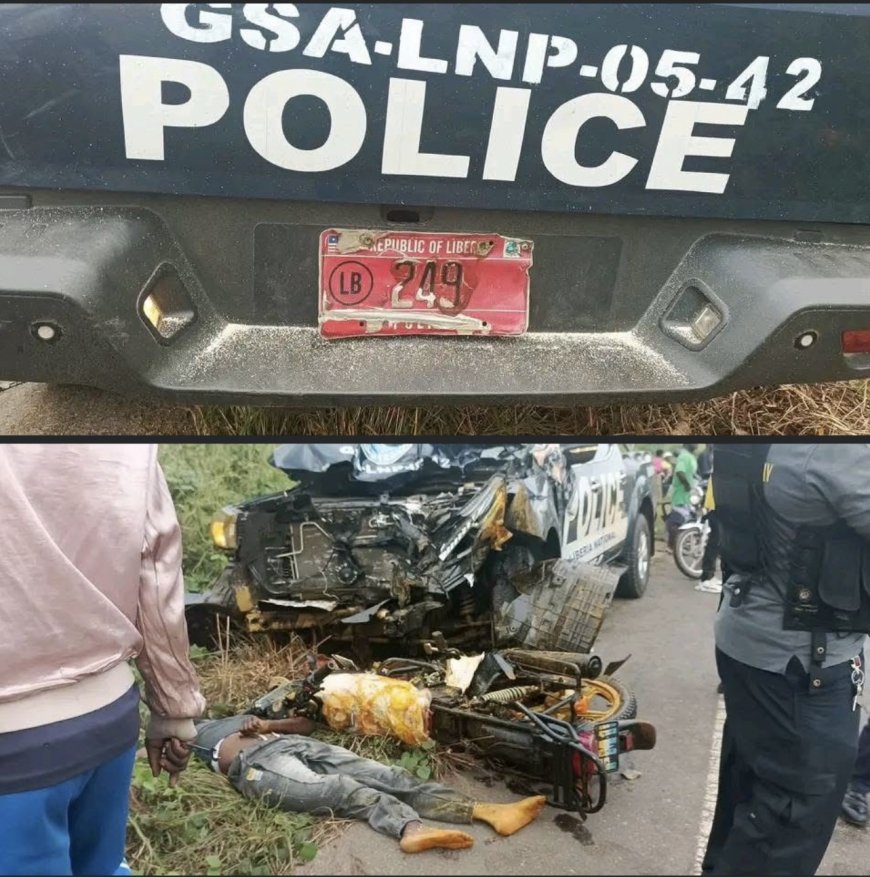 Kakata highway, Liberia: A blue police pickup, bearing license plate number 249, was in route to Monrovia ahead of the presidential escort this today November 22, 2025 at approximately 3: 45, when it was involved in a fatal accident that left one person dead at the scene.